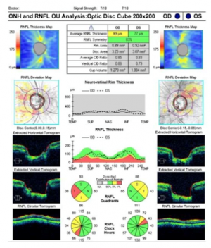 - Optical coherence tomography – OCT is a helpful diagnostic tool that can detect signs of early toxicity, even before the fundus changes become apparent. It can quantify the loss of retinal nerve fibers and be used to monitor patients who are at risk.