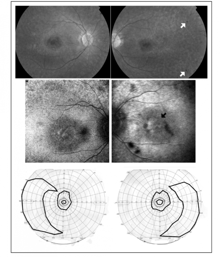 Ophthalmoscopic examination: to identify signs of retinitis pigmentosa.[11]
