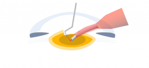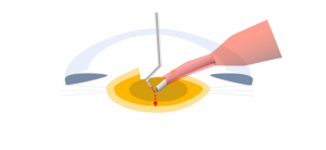 The initial steps of the surgery are the same as for other phacoemlusification techniques: