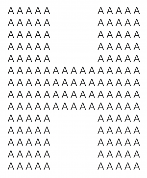 Simultanagnosia is a disorder in which patients can recognise individual elements of a complex visual scene but are unable to grasp the overall meaning.[48][50] This restricted window of visual attention can be thought of as ‘seeing the trees but not the forest’.[42][51] Simultanagnosia appears to be the most prevalent and therefore sensitive feature in early PCA (affecting approximately 85%).[49] It is caused by lesions in the region of the parieto-occipital junction, especially Brodmann area 7 and the superior occipital cortex.[50][52] No quantitative tests for simultanagnosia are available, however a useful bedside screening tool is pseudoisochromatic plates (eg Ishihara). Colour vision is unaffected, however the overall figure cannot be synthesised from the multiple smaller elements.[53] A similar test can be performed with Navon figures (Figure 2).[51] Patients may also be asked to interpret a complex visual scene, such as the commonly used “Boston Cookie Theft” picture.