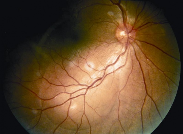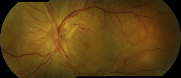 During the chronic stage, many different patterns can occur: decreased autofluorescence (due to peripapillary atrophy and multiple atrophic and pigmented scars), increased autofluorescence (patches or irregular areas of pigmentation and cystoid macular edema) and normal autofluorescence.[6]