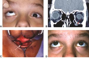 In general, the earlier and less traumatic the procedure with complete reduction of orbital contents, the better the prognosis for complete recovery. However, diplopia may linger for weeks and may paradoxically worsen in the immediate postoperative phase. This is an important point to discuss with the patient and parents before surgery. It is not uncommon for the freed muscle to remain paretic for days to weeks, resulting in a marked hypertropia of the eye in the case of inferior wall WEBOF. As the inferior rectus heals and recovers function, the strabismus improves and hopefully resolves completely. On occasion, a small residual diplopia may persist in extreme up- or downgaze. If significant strabismus and diplopia is present several weeks after repair and an adequate reduction was performed intraoperatively, intramuscular fibrosis is likely present. Rarely, incomplete reduction of orbital contents may be present and may justify early exploration and reconstruction with associated risks. Very young patients (<4 years old) with postoperative diplopia or strabismus should be followed for the development of amblyopia. Otherwise, serial strabismus measurements should be performed to document improvement or stability. Strabismus surgery, when necessary, should be delayed for at least six months following initial repair.