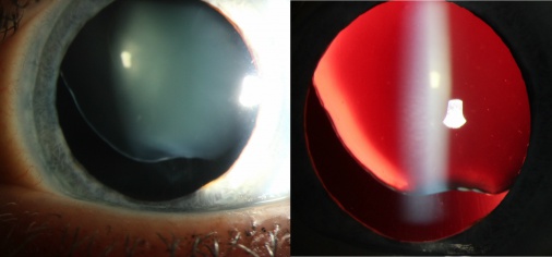 Physical examination of patients with a history concerning for zonulopathy as well as in all patients undergoing evaluation for cataract surgery should include visual acuity, objective and manifest refraction, and a focused slit lamp examination. The slit lamp biomicroscopy should be carefully performed with attention to lenticular centration or malposition, iris transillumination defects, pseudoexfoliation material on the anterior lens capsule or pupil margin, or phacodonesis. In cases of identified zonular dehiscence, it is important to identify both the number of clock hours involved and severity of the dehiscence as this will determine the approach to surgical repair.[2]